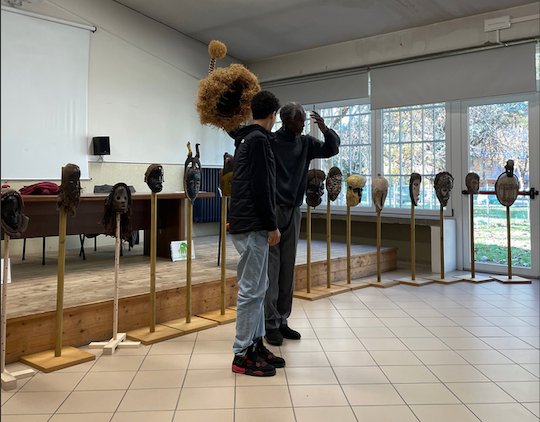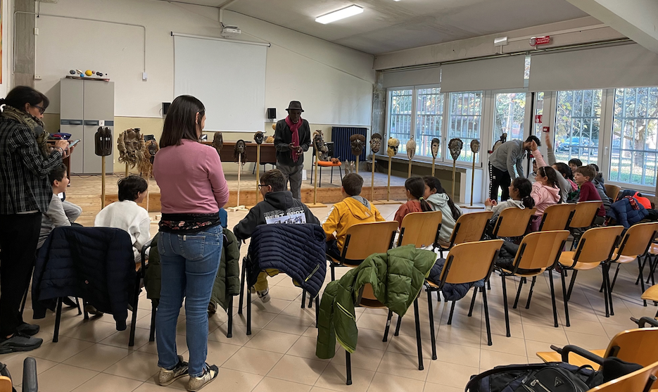 si è concluso oggi con grande entusiasmo generale. Una lezione per noi adulti vedere come i ragazzi, se esposti a contenuti forti, profondi e alti, reagiscono con attenzione e partecipazione. Mohamed “utilizza” il contesto culturale negro-africano dell’epoca pre-coloniale per far capire ai ragazzi che l’uomo per sopravvivere e vivere bene non può che pensare ed agire avendo il NOI e non l’IO come riferimento; e che se si spezza l’equilibrio con le forze della natura, la madre Terra, si scatenano disastri e conflitti. Mohamed ha portato con sé una parte delle oltre 100 maschere ereditate dal nonno, che faceva l’interprete in Senegal e nell’Africa Occidentale sotto dominazione francese, e ne ha spiegato l’origine, la funzione simbolica nel percorso iniziatico dei giovani. Davvero sorprendente il coinvolgimento dei ragazzi anche nel laboratorio musicale dove in pochi minuti sono stati in grado di riprodurre un canto ed una musica tradizionale africana con i loro strumenti senza sbavature. Nei prossimi giorni i ragazzi produrranno magliette colorate usando gli stencil delle maschere, come l’anno passato, e vedremo di organizzare una mostra. Sono sempre più convinta che sia dalle scuole che bisogni incominciare ad investire seriamente sulla formazione alla cittadinanza attiva proponendo ai ragazzi messaggi valoriali importanti. Sono perfettamente in grado di assorbirli e di metabolizzarli, dobbiamo solo avere più fiducia in loro! Anche una classe quarta delle primarie ha partecipato con la stessa intensità dei più grandi. Voglio ringraziare qui il Dirigente Prof. Gennaro Scotti di Ciccariello e la Professoressa Cavani, che hanno reso possibile questo progetto finanziato dalla regione Emilia-Romagna attraverso il Comune di Savignano. Abbiamo ricevuto la visita gradita del Sindaco Tagliavini e del responsabile dell’integrazione a livello di Terre di Castelli, sindaco di Spilamberto, Umberto Costantini, e dell’assessore Antonella Gozzi.