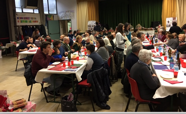 Una gran bella festa, con la partecipazione di soci, amici e parenti, persone conosciute e nuove. Un successo il menu raffinato dei cuochi Giancarlo e Gabriella coadiuvati da una squadra favolosa in cucina e al servizio ai tavoli. Lotteria e mercatino equo-solidale sold out! Grazie anche a Francesca ed amiche che hanno decorato con gusto la sala e preparato dolci squisiti. Obiettivo raggiunto per quanto riguarda la raccolta fondi ma soprattutto per la bella atmosfera che ha rinsaldato i rapporti tra soci e simpatizzanti dell’associazione.