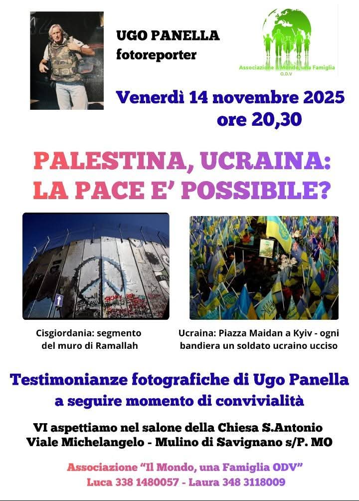 Venerdì 14 novembre, Ugo Panella, fotoreporter di grande esperienza, ha condiviso con noi straordinarie immagini e racconti su cosa significa essere presenti in luoghi di conflitto e testimoniarne le conseguenze, in particolare sulle persone più fragili. Le sue recenti missioni in Palestina e Ucraina hanno documentato la sofferenza delle popolazioni colpite ma anche il lavoro di solidarietà per alleviarla. La nostra associazione ha dato il suo piccolo contributo, tramite la fondazione Soleterre, alla creazione di reparti ospedalieri pediatrici a Kyiv e Betlemme. Un ringraziamento a Ugo Panella per aver risposto anche quest’anno al nostro invito.